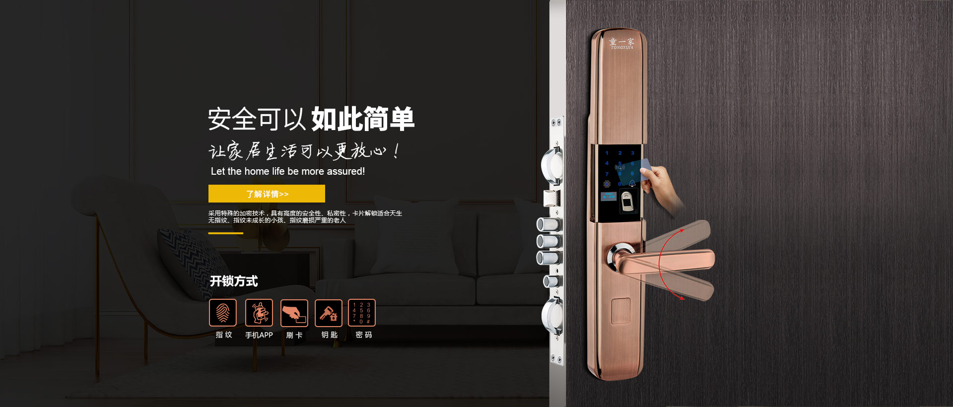 ÊÇÒ»¼ÒרעÓÚÖÇÄÜËø¡¢ÖÇÄÜÃÅ¡¢·ÀµÁÃÅ¡¢·Ç±êÃÅÑз¢ºÍÉú²ú¡¢°²×°¡¢ÊÛºóÓÚÒ»ÌåµÄ¹«Ë¾£¬×¨×¢Óڸ߶ËÖÇÄÜÃÅËø¡¢È«×Ô¶¯ÖÇÄÜËø¡¢Ö¸ÎÆËø¡¢ÃÜÂëËø¡¢´ó²ÊÆÁÖ¸ÎÆËøÑз¢¡£¹«Ë¾¾¹ý¶àÄêµÄ·¢Õ¹£¬ÔÚ¹ã´ó¿Í»§µÄ´óÁ¦Ö§³ÖÏ£¬Í¨¹ý×ÔÉí²»¶ÏµÄ´´ÐºͻýÀÛ£¬Í¯Ò»¼ÒÖÇÄÜËøÒѾõÒÉí¹úÄÚÆ·ÅÆ¡£